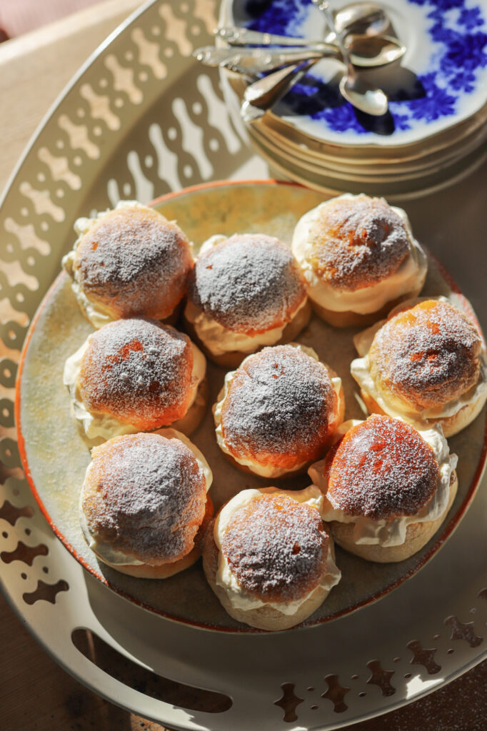 Den här dagen var så himla gossig, när jag och barnen bakade bullar tillsammans. Alla fem barnen var involverade. Ur bild här är Storebror som barnvaktar sin minsta lillasyster (HÄR kan man se denna dag i film). Nybakt bulle med kall mjölk, så gott. Dock lagom till fettisdag när semmelbullarna skulle fyllas, startade Sjukstuga Deluxe. Sååå… jag längtar fortfarande efter årets första semla.